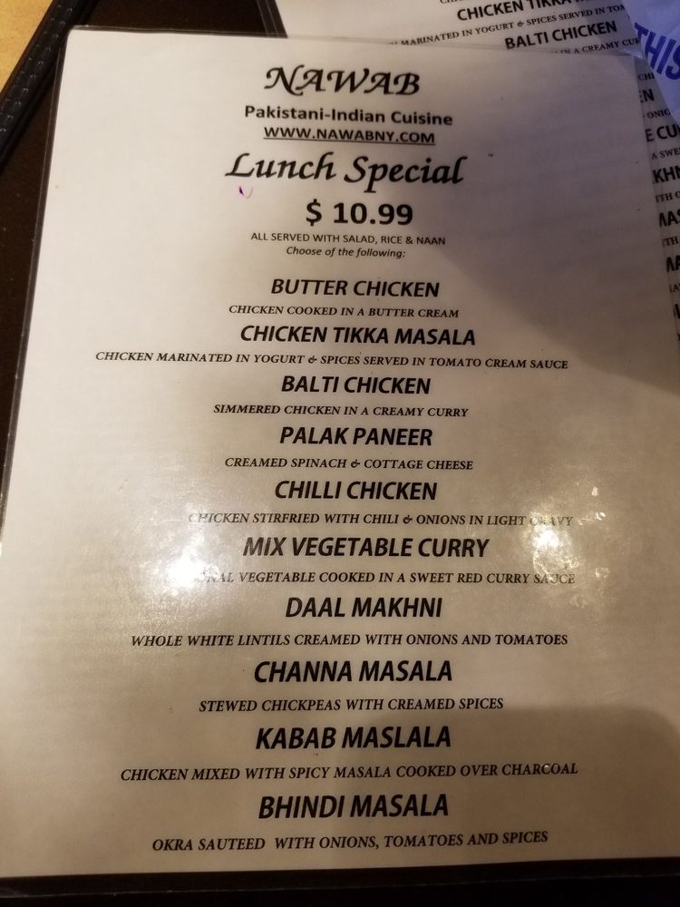 “ Wow, just wow! Nawab was our favorite Pakistani Indian restaurant over 4 years ago when we used to work in Yonkers we recently went back to celebrate my husbands birthday and IT DID NOT DISAPPOINT! We were there for lunch on a Thursday and it wasnt crowded, and the atmosphere was very relaxing I enjoyed the music they were playing. We got the best seat in the house by the big picture window. Our server was super nice and knowledgeable about the food, and she made us feel so welcome. Now about the FOOD it was even better than I remembered it! We got the Balti Chicken and Lamb Balti Gosht, plus Mango Lassi. Everything tasted flavorful and fresh. The meat was so tender! We had such a great experience that I wished we had returned sooner! Thank you, Nawab, for the excellent meal and wonderful service! ”